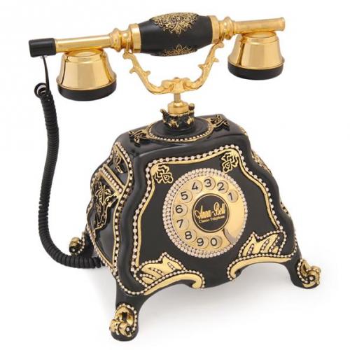 Ürün Hammadesi: Polyester Döküm Ürün Renk: Siyah Garanti: 3 Yıl Makina Aksamı: Sıemens Tuş Takımı: Çevirmeli/ Kolay Kullanımlı Zil Sesi: Çıngırak Ürün Ölçüleri: 18x24x29h Ağırlık: 2120 gr Osmanlı Motifleriyle süslenmiştir. Altın Varaklarla Bezenip Swarovski Taşlarla süslenmiştir.