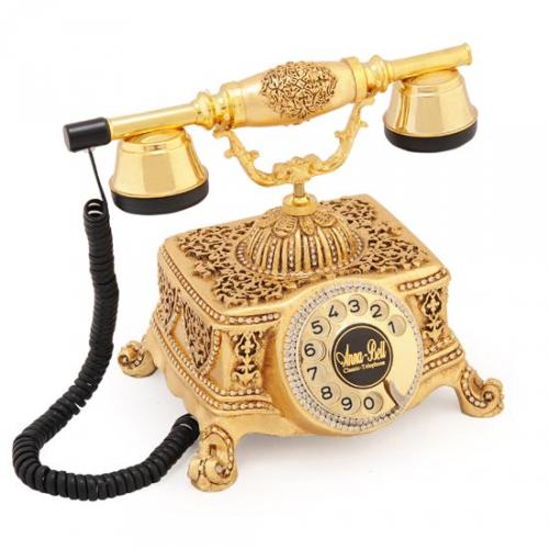 Ürün Hammadesi: Polyester Döküm Ürün Renk : Altın Garanti: 3 Yıl Makina Aksamı: Sıemens Tuş Takımı: Çevirmeli / Kolay Kullanımlı Zil Sesi : Mekanik Ürün Menşei: Türk Malı Ürün Ölçüleri : 27 x 20 x24/h cm Ürün yaprak varak çalışması olup kenarları swarovski taşlarla şık bir hale getirilmiştir.