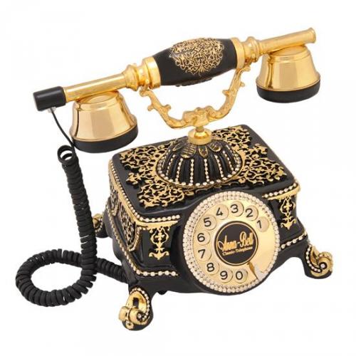 Ürün Hammadesi: Polyester Döküm Ürün Renk : Siyah Garanti: 3 Yıl Makina Aksamı: Sıemens Tuş Takımı: Çevirmeli / Kolay Kullanımlı Zil Sesi : Mekanik Ürün Menşei: Türk Malı Ürün Ölçüleri : 27 x 20 x24/h cm Ürün yaprak varak çalışması olup kenarları swarovski taşlarla şık bir hale getirilmiştir.
