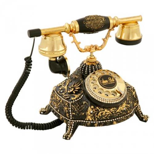 Ürün Hammadesi: Polyester Döküm Ürün Renk: Siyah Garanti: 3 Yıl Makina Aksamı: Sıemens Tuş Takımı: Çevirmeli/ Kolay Kullanımlı Zil Sesi: Çıngırak Ürün Ölçüleri: 18x22x25h Ağırlık: gr Osmanlı Motifleriyle süslenmiştir. Altın varaklarla bezenip swarovski taşlarla süslenmiştir.